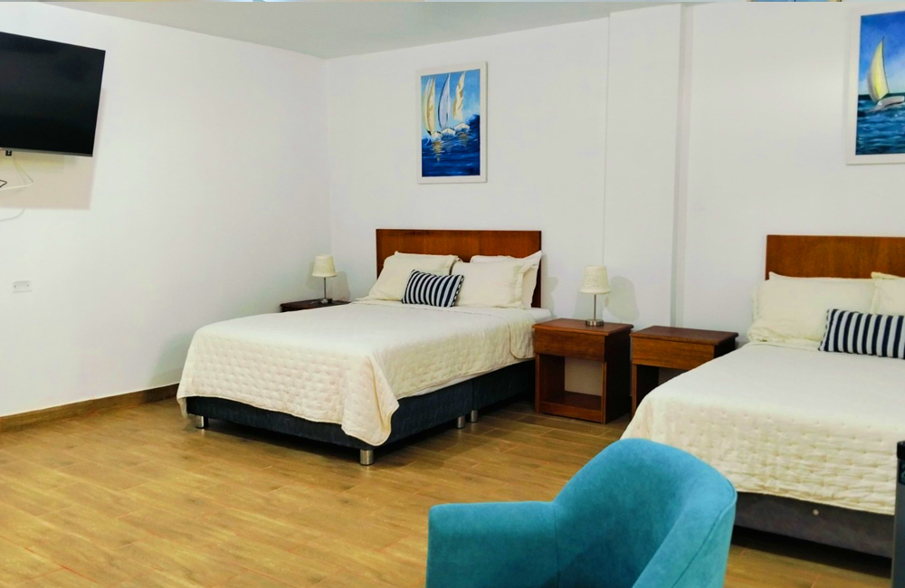 Amplias y cómodas habitaciones, equipadas con todo lo necesario para que puedas sentirte como en casa: Smart TV, Wifi, Baño privado con agua caliente, aire acondicionado, frigobar y muebles para ropa. Incluye amenities (shampoo/acondicionador y jabón) y toallas de baño.